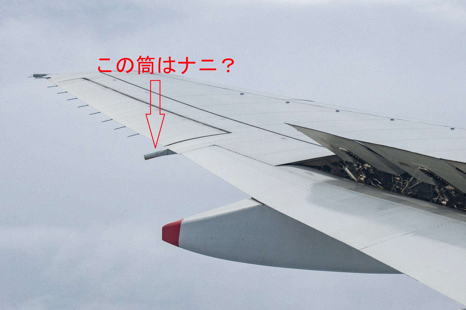 旅客機は機種ごとに離陸できる総重量の最大値である最大離陸重量が決まっています。一方でランディングギアや機体の損傷を防ぐために最大着陸重量も決まっています。国際線など長距離を飛ぶ機体では燃料を多く搭載するため、出発時の重量が最大離陸重量以下でも、最大着陸重量を上まわることがあります。そのため、燃料を満載した離陸直後に急病人や機体トラブルが発生して、ただちに着陸しなければならない場合は、搭載した燃料を空中に投棄して機体重量を軽くしなければなりません。その為、中・長距離を飛ぶ中型・大型の旅客機には「燃料投機システム」を備えています。また、中・長距離向けの機種でも、上空で旋回するだけでは燃料の消費に時間が掛かるため、燃料投機システムがオプション設定されています。写真は主翼に備わる燃料投棄システムのノズル部分です。