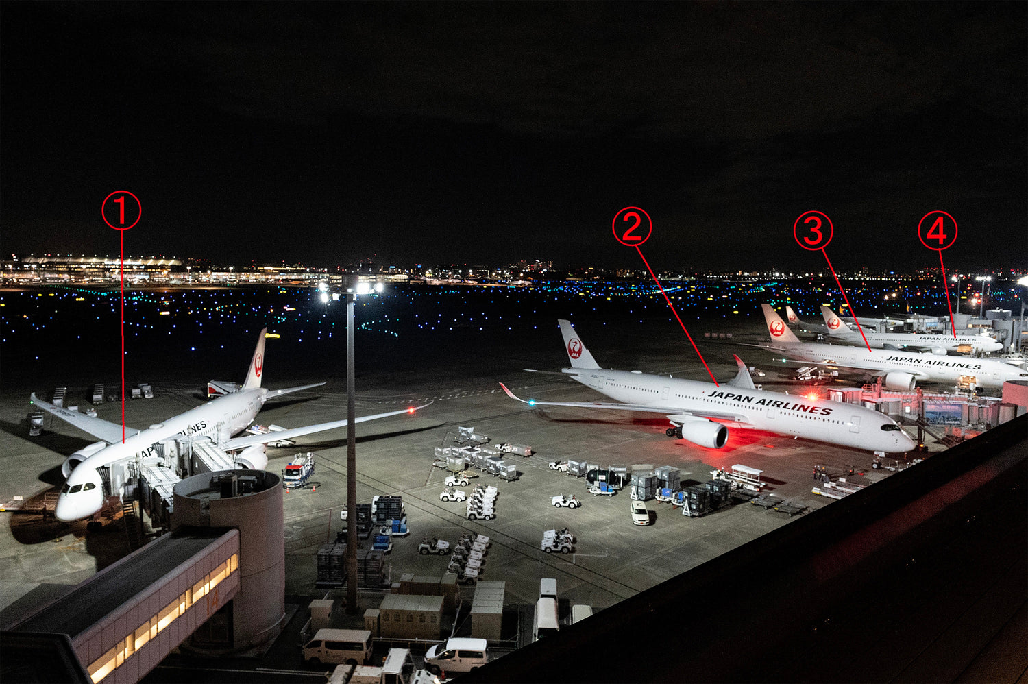 国際線も再開しつつある羽田空港。2022年8月現在、定期便として就航する機体のうち、最も全長が長いのは、ルフトハンザドイツ航空がフランクフルト=羽田線で運航する「ボーイング747-8」。その全長は76.3メートルと、東海道新幹線の先頭車両(約27.4メートル)に中間車両(25メートル)を2両繋いだ長さとほぼ同じです。他の機種も①のエアバスA340-600は約74.8メートル、②のボーイング777-300ERは73.9メートル ③のボーイング787-10は68メートルと、いずれもかなりの大きさです。総2階建ての超大型旅客機、エアバスA380は試験飛行で飛来したことがありますが、定期便での就航はありません。また、A380も全長約73メートルと、747-8やA340-600よりやや短いのです。ちなみに、ルフトハンザのフランクフルト=羽田便は週3日の運航で、火曜日・木曜日・土曜日の羽田に朝9時45分に到着、11時35分にフランクフルトに向けて出発します。