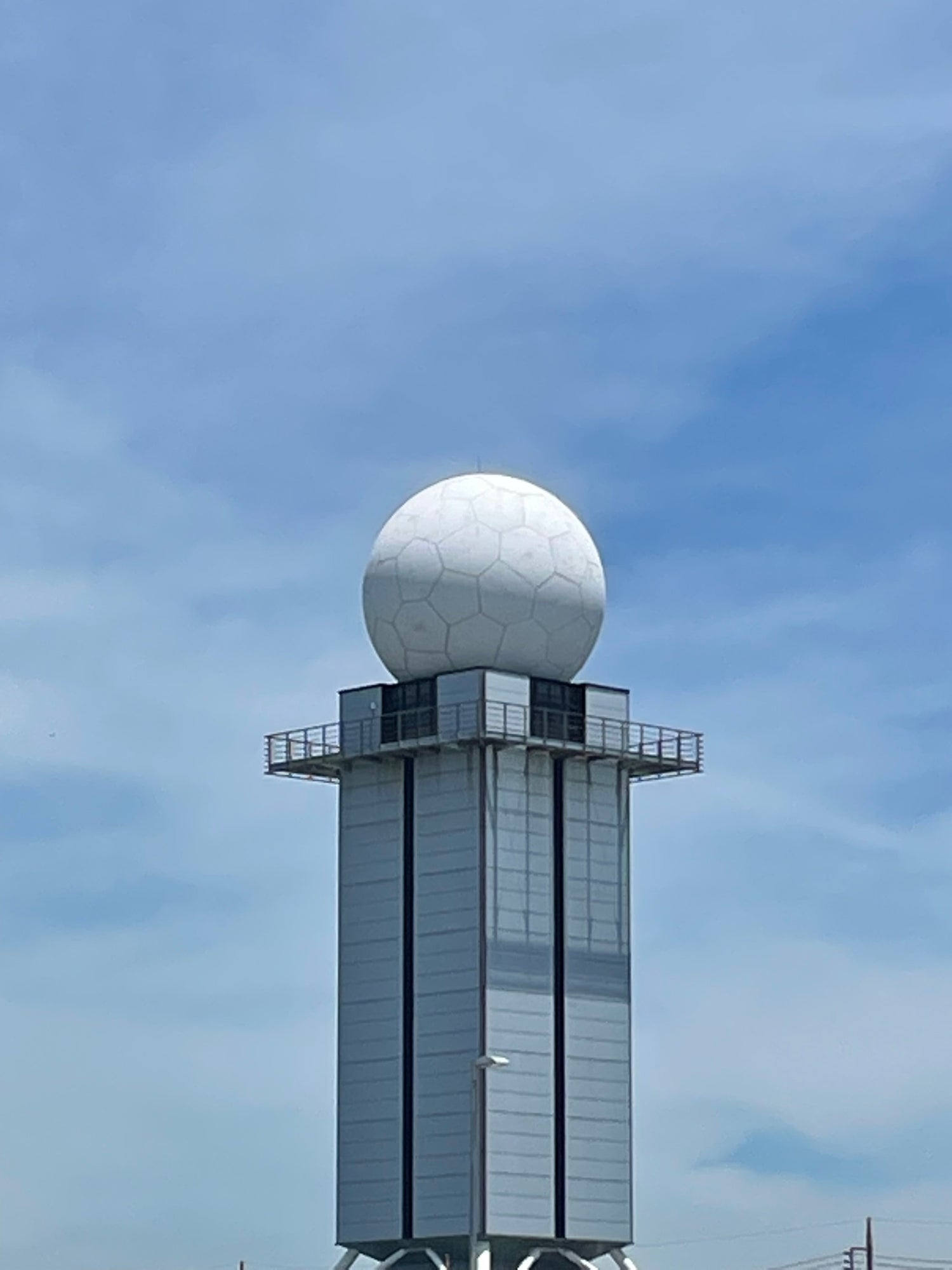 最近、よく聞かれるゲリラ豪雨や突風といった急な気象の変化。こうした気象の変化は飛行機の運航にも大きな影響を及ぼします。そこで、羽田空港には積乱雲からの下降気流をはじめとする風向や風速の急変(ウインドシアー)を検出する、高性能な「航空気象ドップラーレーダー」をいう装置が設置されています。丸いレーダードームがかわいらしくもありますが、内部には直径7メートルもあるパラボラアンテナがあり、遠く半径120kmもの範囲にわたって、雨粒の動きや大きさなどを観測しています。こうしたデータから風が急変する場所といった情報を航空会社や各機関に提供しています。