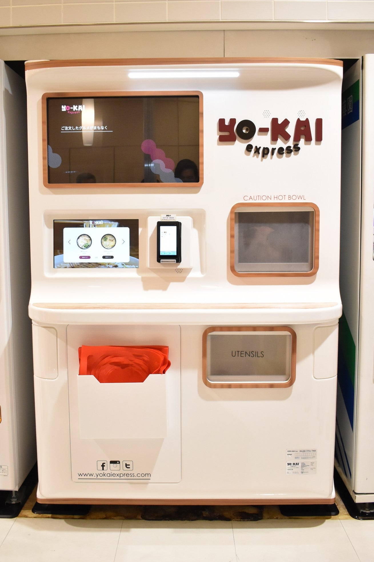 ラーメンの自動販売機を開発したのは、シリコンバレーのフードテックベンチャー企業であるYo-Kai(ヨーカイ)で、注文後約90秒で熱々の出来たてラーメンを提供するという優れもの。メニューは、「塩・醤油・とんこつ・みそ」の全4種類。この自動販売機の「Yo-Kai Express(ヨーカイエクスプレス)」という名前は日本の妖怪に由来し、突然現れる妖怪のように“いつでもどこでも食べられる”というコンセプトが込められています。