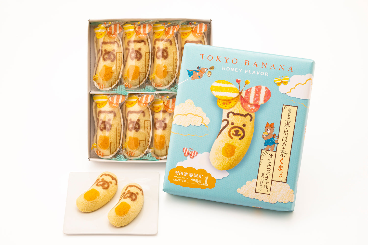 東京みやげブランド「東京ばな奈ワールド」は、これまでも羽田空港限定みやげ商品を開発・販売してきましたが、2019年4月から空とぶ東京ばな奈くまッス。はちみつバナナ味、「見ぃつけたっ」を発売しています。はちみつ香るバナナクリームをおなかにかかえた、ふかふか子熊のスポンジケーキで、描かれた「くまッス」たちが、全員行儀よく並んで、右手でピッと敬礼しています。羽田空港公式オンラインストア「HANEDA Shopping」でも購入できます。