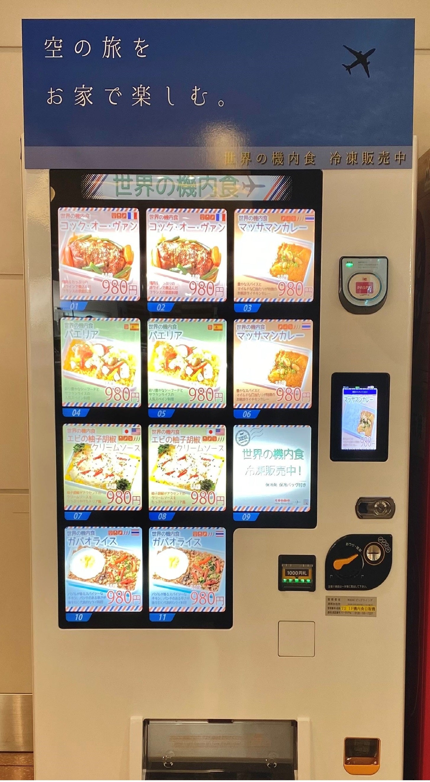羽田や成田から出発する国際線の機内食を手がけるコスモ企業株式会社が製造する「世界の機内食」シリーズ。2021年3月に同シリーズを発売したところ大好評!ということで、今年6月には第2ターミナル1階出会いのひろば1に自動販売機が設置されました。現在は販売メニューから人気の高い5種、フランスの家庭料理「コック・オー・ヴァン」、スペインの代表的な料理「パエリア」、タイ料理の「ガパオライス」のほか、「エビの柚子胡椒クリームソース」、「マッサマンカレー」が選ばれており、お値段は1食980円となっています。いずれもお持ち帰り専用の冷凍商品ですが、電子レンジ調理可能なので、羽田土産にいかがでしょうか?