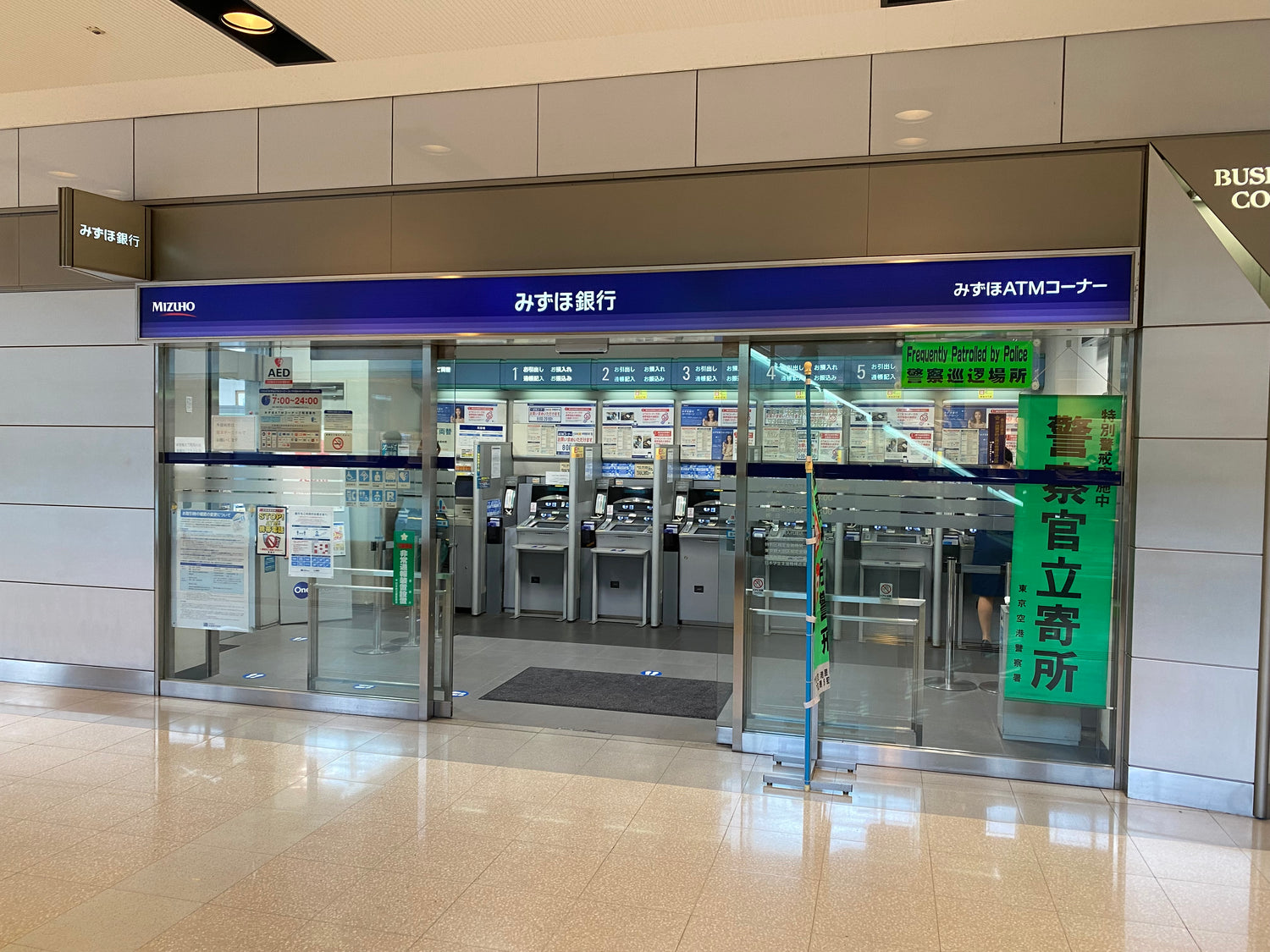 羽田空港第1ターミナルの1階到着ロビーにみずほ銀行羽田空港出張所が、第3ターミナル1階エントランスプラザにみずほ銀行羽田空港第二出張所があります。また銀行のATMではゆうちょ銀行、三菱UFJ銀行、三井住友銀行、セブン銀行、りそな銀行、横浜銀行など、第1ターミナル14カ所、第2ターミナル11カ所、第3ターミナル8カ所が設置されています。