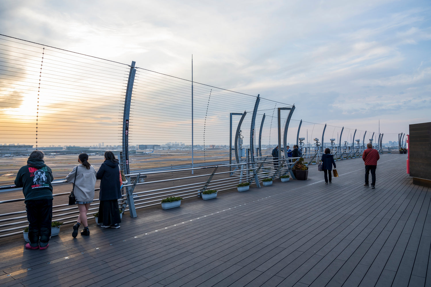 羽田空港には3つの旅客ターミナルがありますが、すべてに飛行機が眺められる展望デッキがあります。訪れてみると「広いなあ!」と思うこの展望デッキ、第1ターミナルは上下2フロアを合わせて約1650平米、第2ターミナルが南北合せて約5400平米、第3ターミナルが約3300平米で、合計すると約1万350平米という広さ。1面約260平米のテニスコートに換算すると、なんと40面分にも相当します。