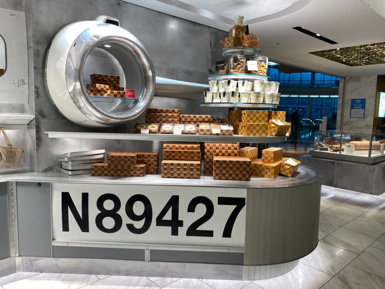 飛行機を模したあけ口から開くと飛行機雲のようになるパッケージなど、羽田空港ならではの商品が販売されています。