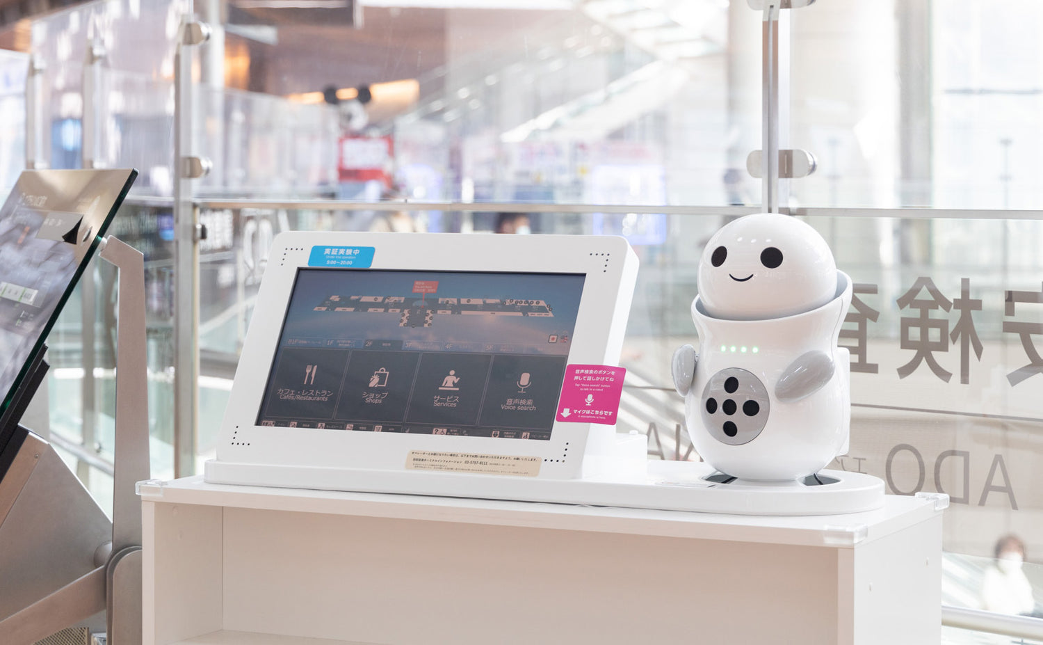 とても広い羽田空港では、数多くのレストランやショップ、各種サービス施設があります。例えば、通い慣れた方でも「ATMどこだっけ?」「一番近いコインロッカーは?」というコトもあるはず。そんなシーンでのご案内で活躍しているのがインフォメーションカウンターに設置の「mini MORK」。第1ターミナルと第2ターミナルの案内カウンターにいる「mini MORK」はAIの搭載を前提に開発されたロボットで、現在はAIでの対応と、遠隔操作で空港サービスセンターから案内を行っています。空港内で何かお困りごとがあるときは遠慮なく声を掛けてくださいね。