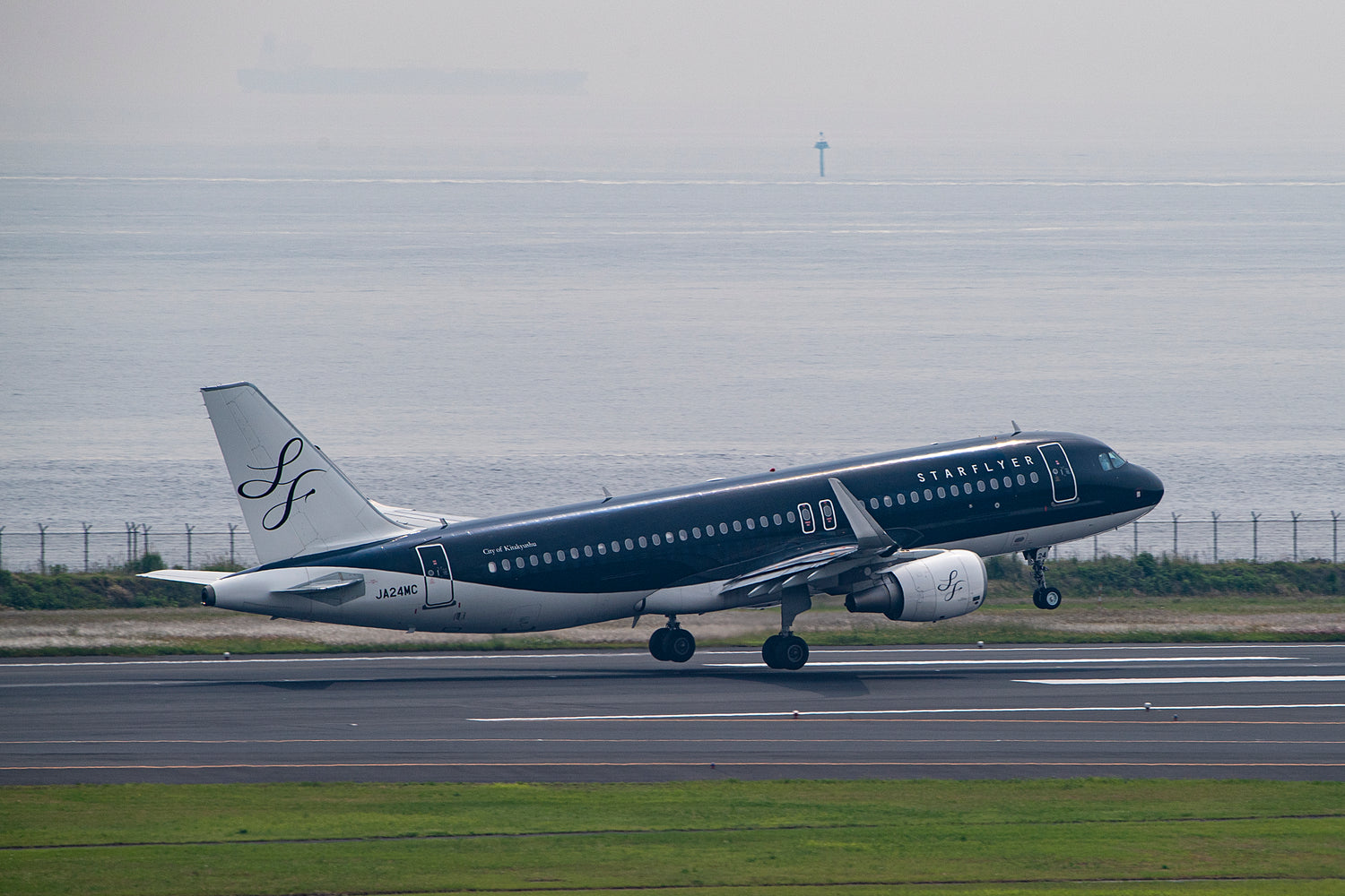 羽田空港の国内線は航空会社により利用ターミナルが異なります。第1ターミナルは日本航空、日本トランスオーシャン航空、スカイマーク、スターフライヤーの4社が乗り入れています。この中でスターフライヤーはターミナル南側に位置する、1番から3番搭乗口を主に使用しています。とはいえ、専用というわけではなく、日本航空も使用しているので、ご出発の際はご注意を。また、一部の便はバスでの移動をともなうオープンスポットからの出発となることもあるので、空港には早めにお越しくださいね。
