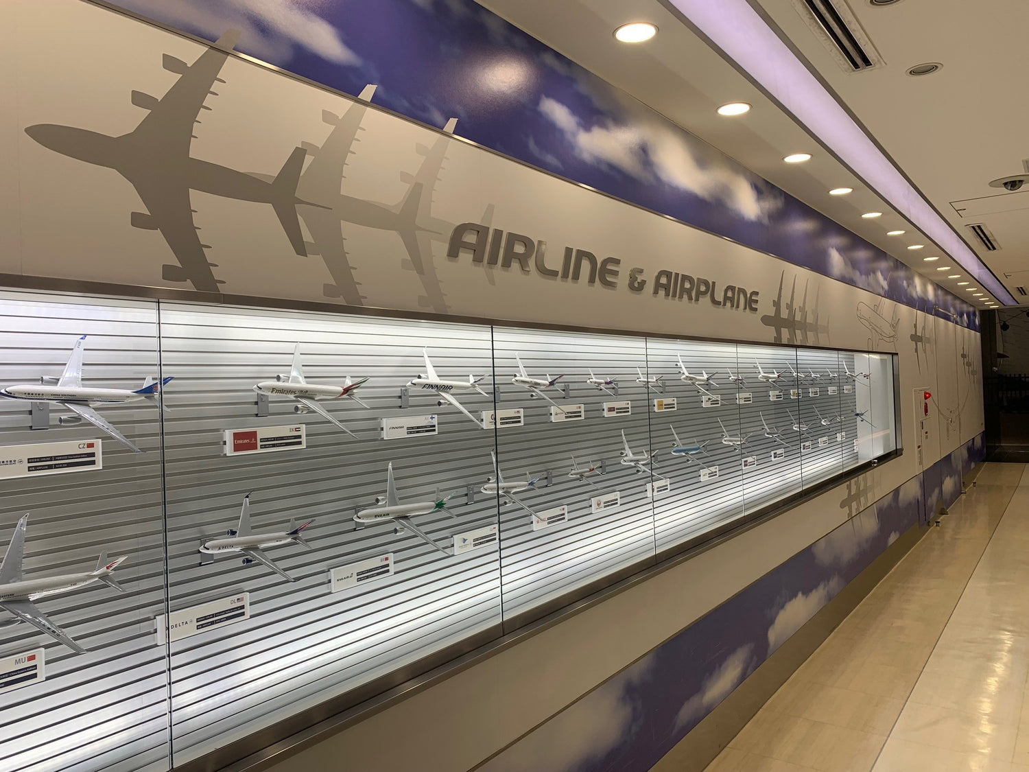 TIAT SKY ROADのお祭り広場から展望デッキに向かう通路スペースには、各航空会社のモデルプレーンが37台展示されています。(2023年1月時点)こちらは主に羽田空港国際線に就航していた飛行機を展示していますが、新型コロナウイルスの影響などにより、すべての就航会社の飛行機を展示しているわけではありません。しかし、空港、飛行機、空の旅の期待感が高まり、飛行機好きでなくても楽しめるエンターテインメントスポットです。