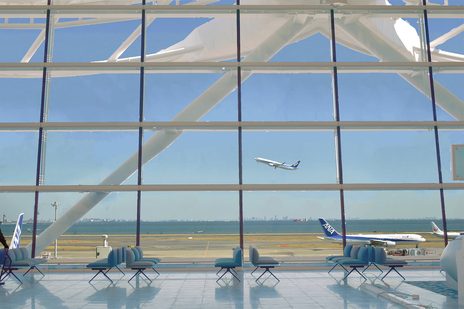 羽田空港には3つのターミナルビルがあり、第1ターミナルは地下1階/地上6階建て+展望デッキで高さは30メートル、第2ターミナルは地下1階/地上5階建てで高さは32メートル、第3ターミナルは地上5階建てで高さは25メートルです。「日本の首都、東京なので高層ビルの空港だったらカッコいいのに」と思う方もいそうですが、空港周辺には『制限表面』という規制があり、飛行の障害とならないよう、一定の高さを超える建物は建てられないことになっています。唯一の例外は管制塔ですが、ターミナルビルは周りに高い建物がないため視界が開けており、第1ターミナル展望デッキからは遠く富士山、第2ターミナルの展望デッキからは東京湾を挟んだ対岸の千葉県の工業地帯まで見渡せます。