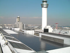 羽田空港ターミナルで約100万kWh、国内貨物ターミナルで約110万kWh、空港施設で約120万kWhを発電しています。環境省のデータによると、1世帯当たりの年間消費電気量は、全国平均で4322kWh。これらを計算すると、概算で1018世帯となります。なお、羽田空港の太陽光エネルギーは24時間運用する大型冷蔵庫や自動仕分け装置などのさまざまな設備を稼働するための自家消費に充てられています。